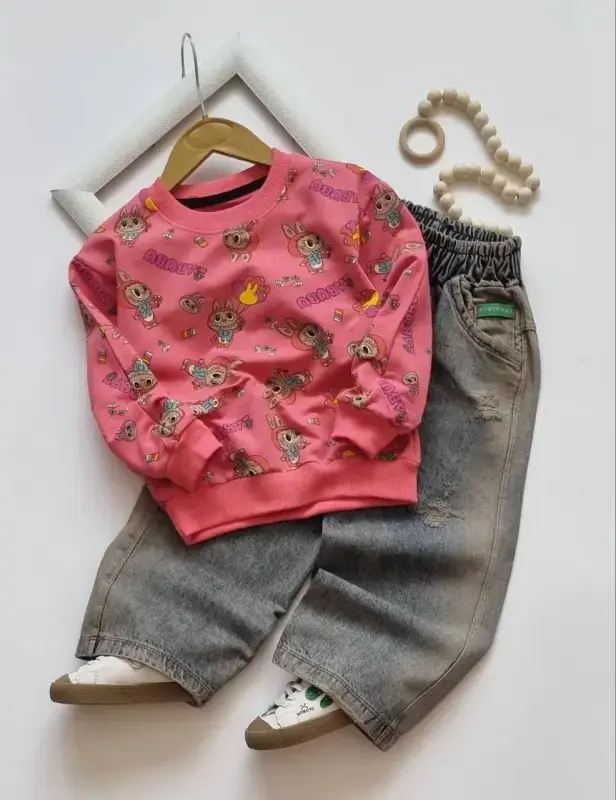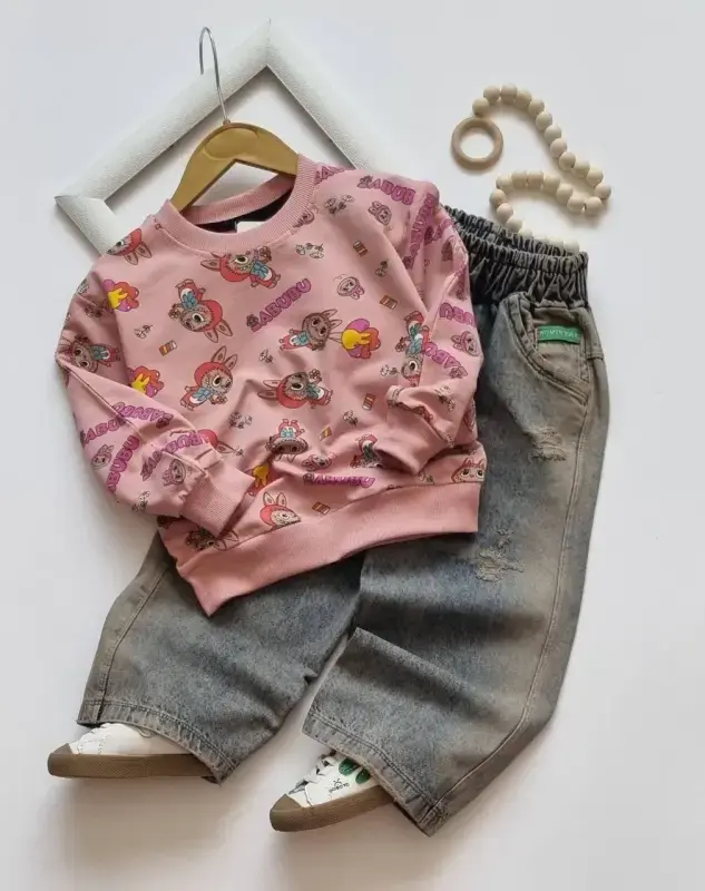 خرید عمده ست بلوز و شلوار پاییزه دخترانه طرح خرگوشی