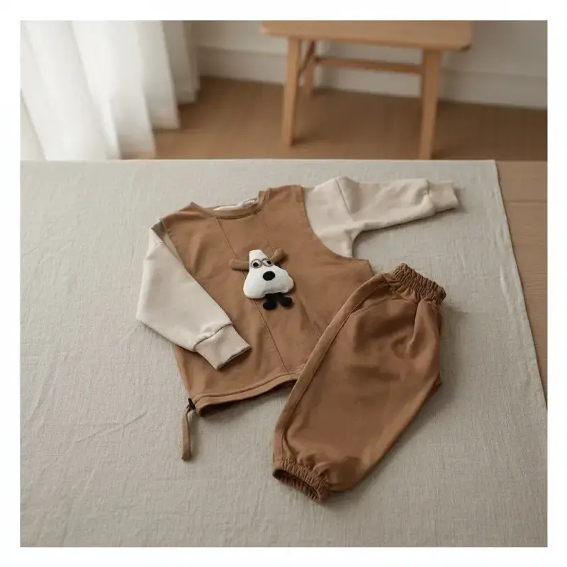 خرید عمده ست سه تیکه اسپرت بچگانه طرح عروسکی