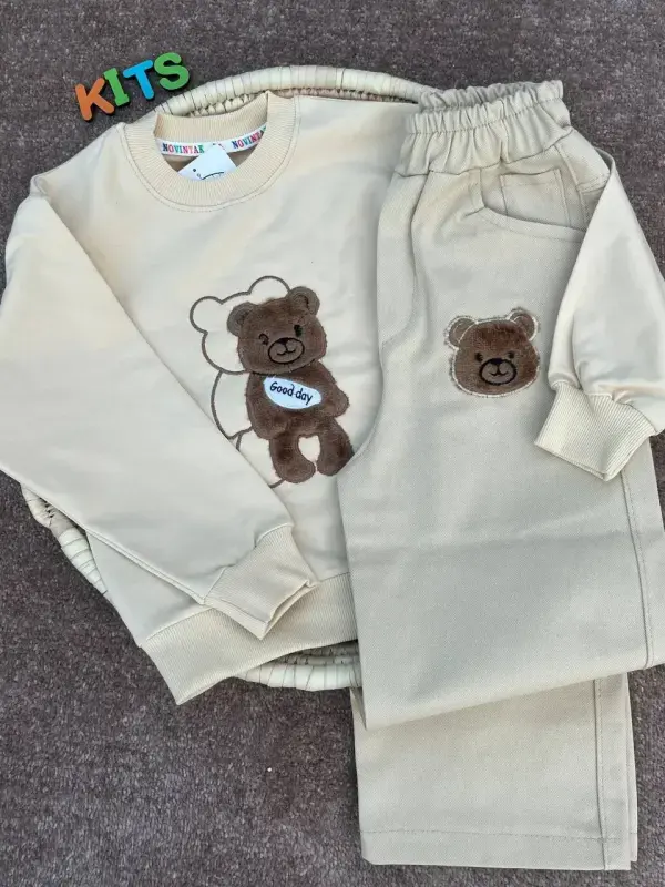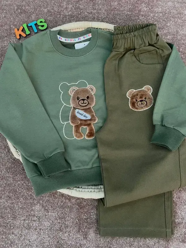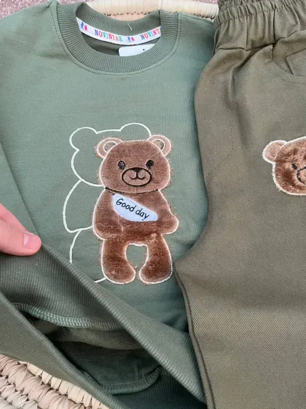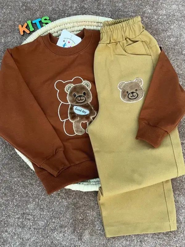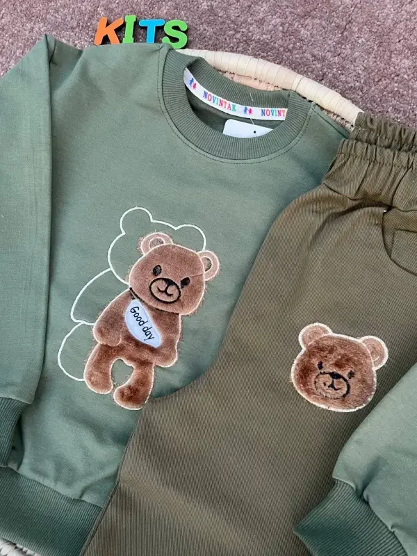 خرید عمده ست بلوز و شلوار پاییزه طرح خرس برای کودکان