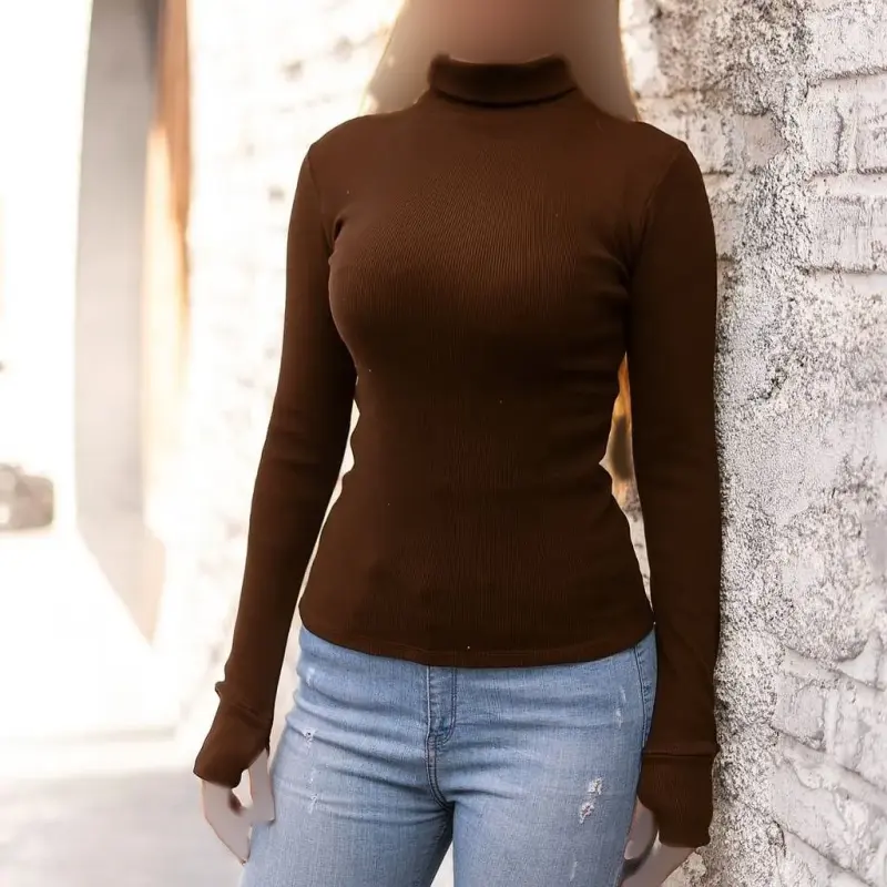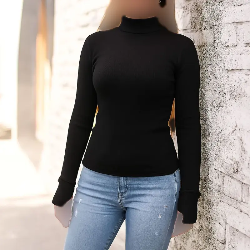 خرید عمده کراپ یقه اسکی آستین فینگر دار زنانه