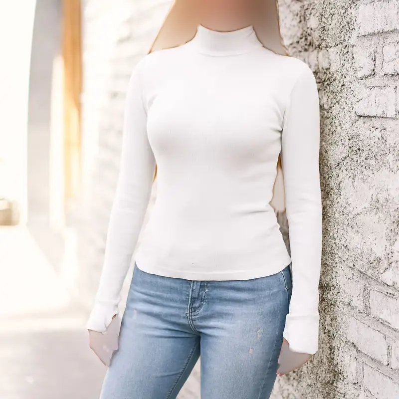 این کراپ یقه اسکی با طراحی آستین فینگر دار، انتخابی شیک و کاربردی برای تکمیل استایل بانوان است. مناسب برای خرید عمده پوشاک و ارائه در بوتیکها و فروشگاههای آنلاین.
