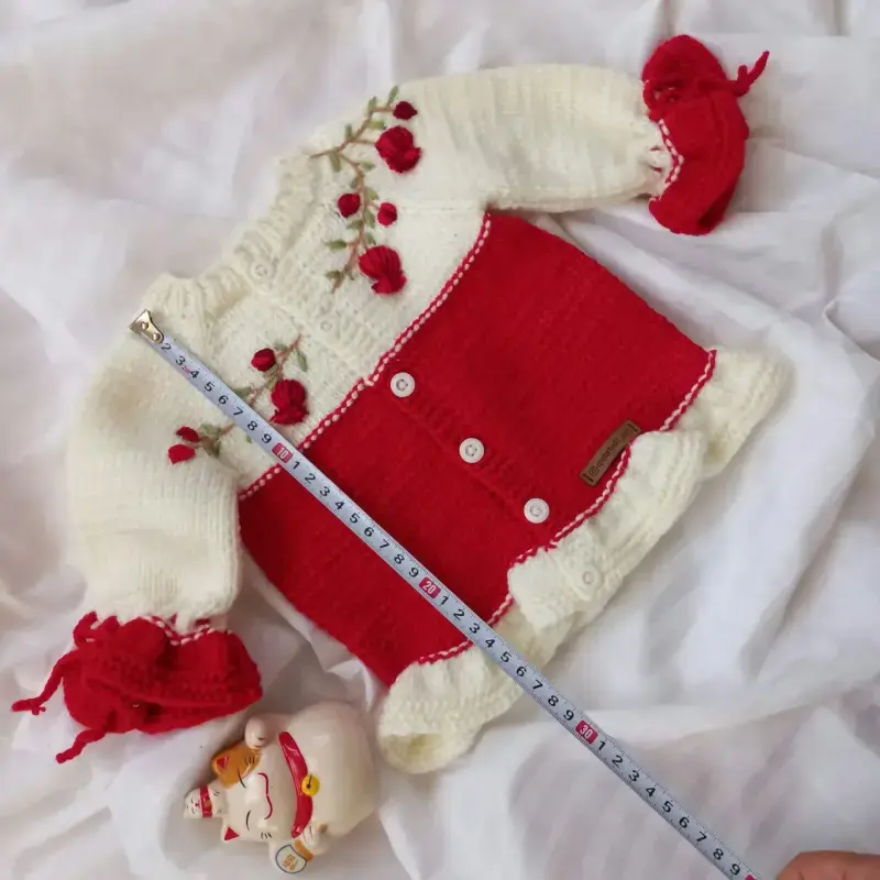 ژاکت بافتنی نوزادی دخترانه طرح انار و گل رز