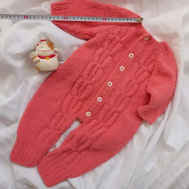 این سرهمی مخملی نوزادی دستبافت، انتخابی ایدهآل برای خرید عمده پوشاک نوزادان است. با طراحی خاص و بافت گرم، مناسب فصل سرما بوده و استایلی منحصربهفرد برای دلبندان شما ایجاد میکند.