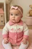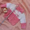 خرید عمده ژاکت بافتنی صورتی نوزادی دستبافت با طرح گل