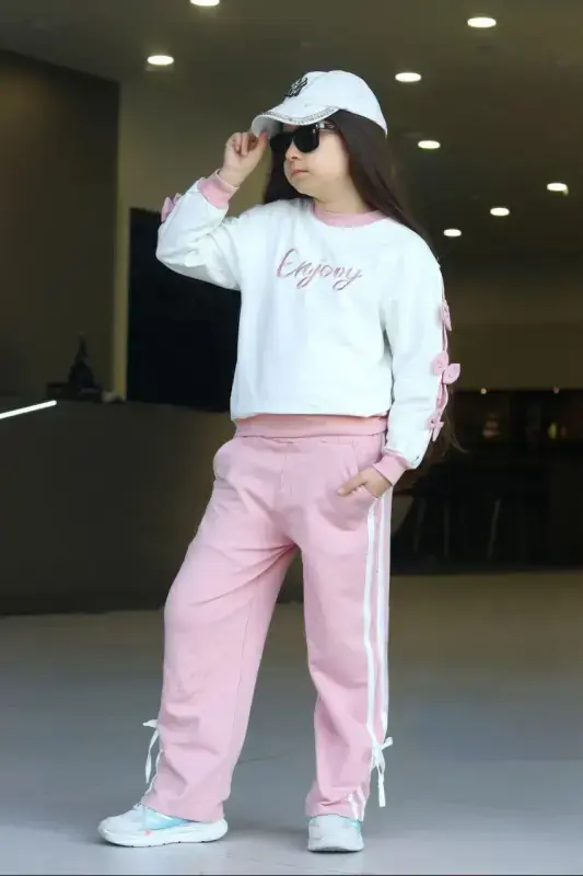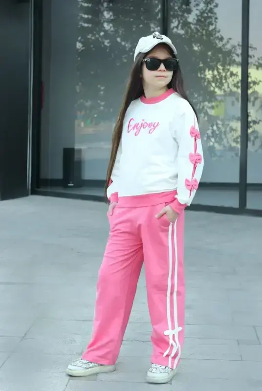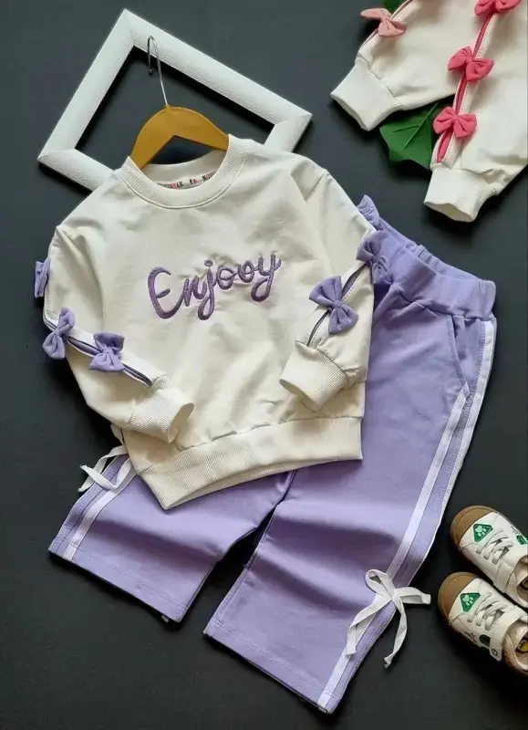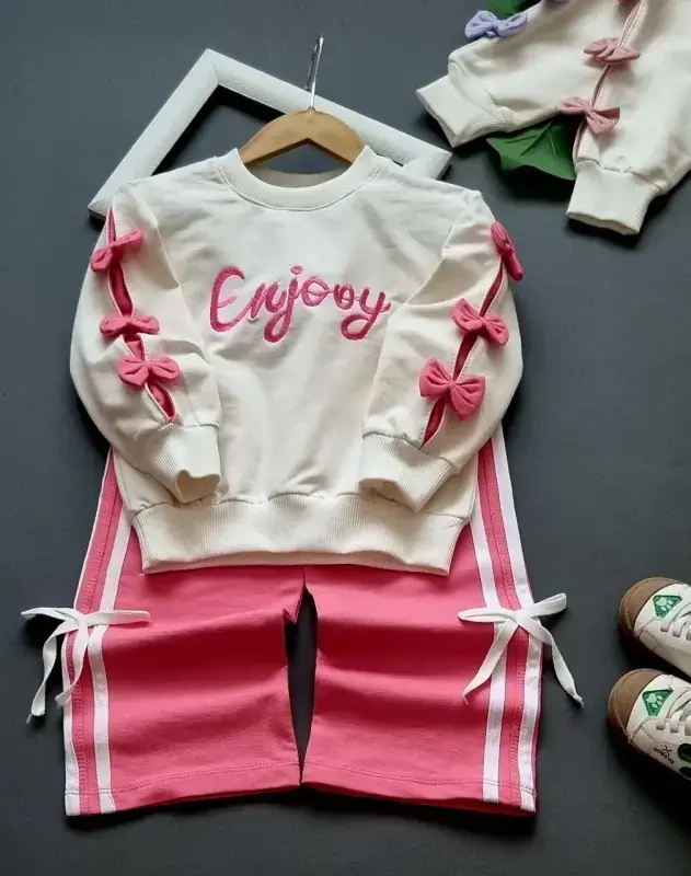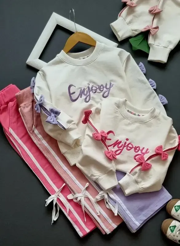 خرید عمده ست بلوز و شلوار پاییزه دخترانه طرح Enjoy کد 578
