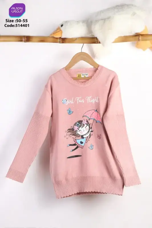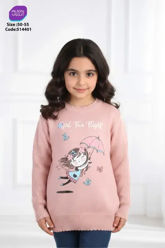 خرید عمده بلوز بافت دخترانه طرح چتری سایز 50-55 کد 514401