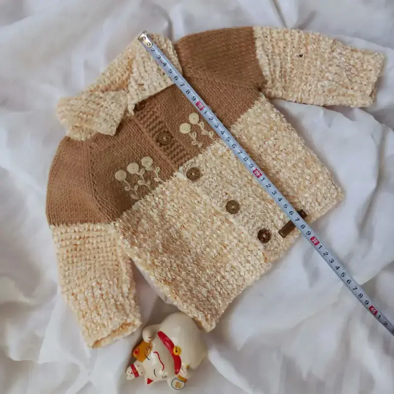این ژاکت بافتنی کرم رنگ، انتخابی ایدهآل برای تکمیل کلکسیون پوشاک نوزاد و کودک شماست. طراحی زیبا با طرح گل و دکمههای چوبی، جلوهای خاص و منحصربهفرد به این محصول میبخشد.