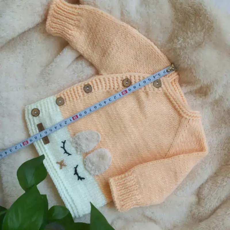 این ژاکت بافتنی نوزادی با طرح خرگوشی و رنگ گلبهی، انتخابی ایدهآل برای فصل سرما است. محصولات ما با استفاده از کاموای نرم، گرم و ضد حساسیت که به صورت دو میل دستبافت تهیه شدهاند، مناسب پوست لطیف نوزادان و کودکان هستند.