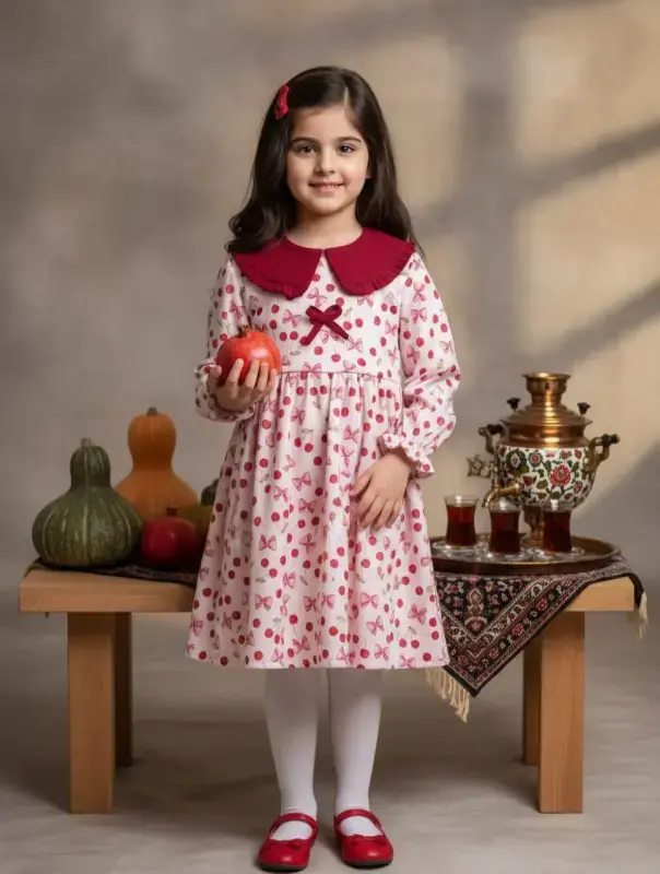 پیراهن دخترانه طرح یلدا مخمل کبریتی گلسا