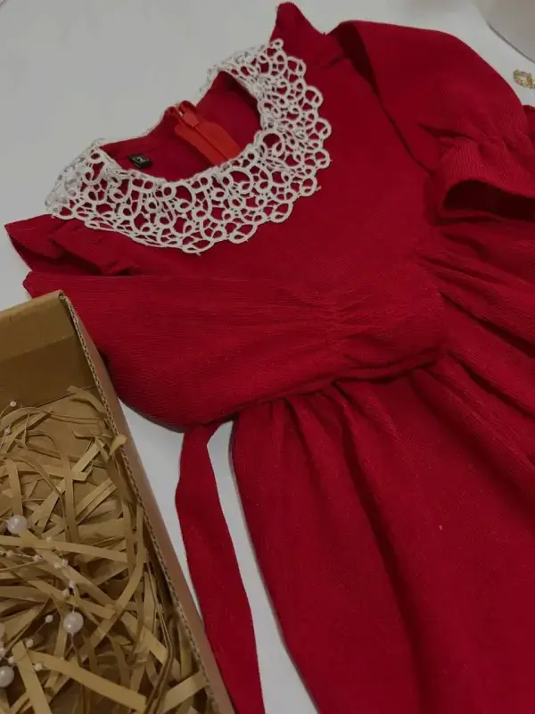 پیراهن دخترانه نارگل کبریتی یقه گیپور