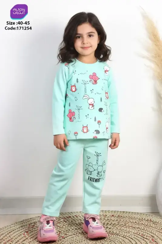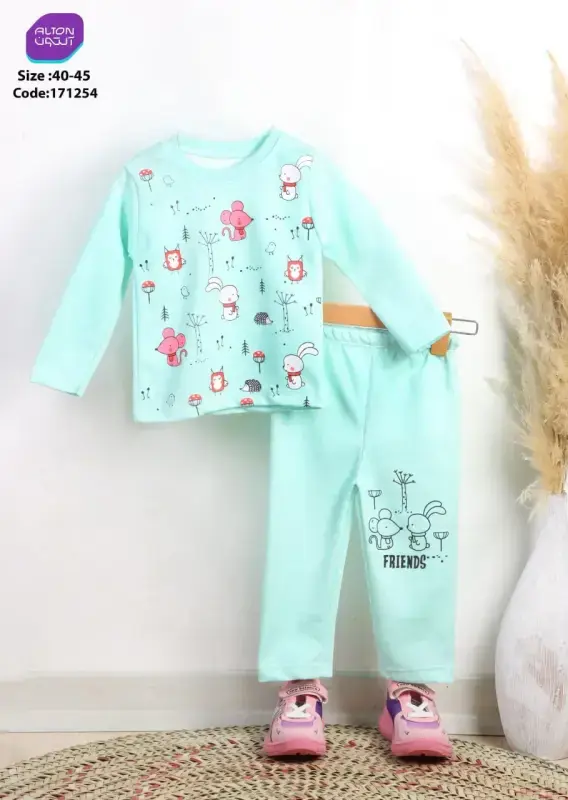خرید عمده بلوز شلوار دخترانه طرح جنگل حیوانات کد 171254