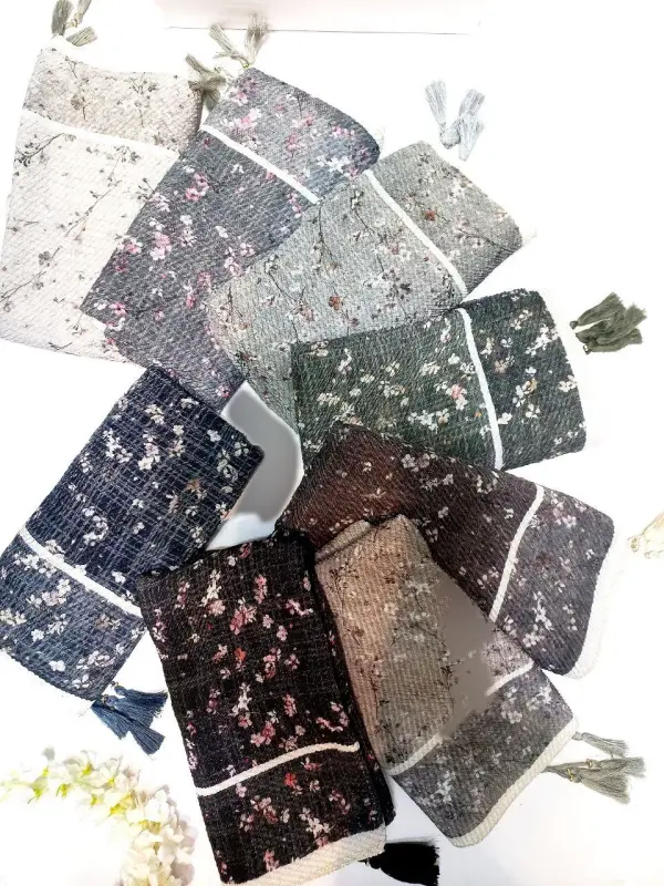 خرید عمده روسری مجلسی شاین برشکا پاییزه طرح گل منگوله دار