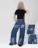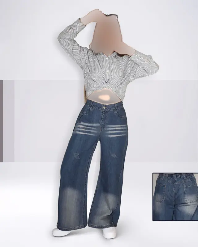 خرید عمده شلوار بگ زنانه جین راسته پشت کش طرح دار مناسب 8 تا 17 سال