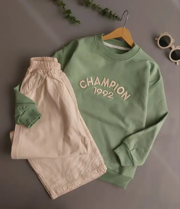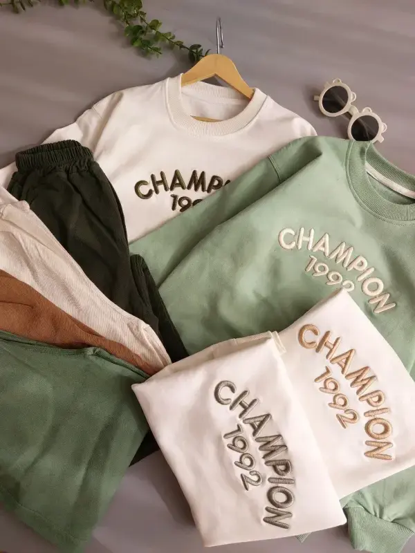 ارائه شده برای خرید عمده پوشاک، بلوز و شلوار کتان پسرانه طرح Champion کد 1992، انتخابی ایدهآل برای بوتیکها و آنلاینشاپهای پوشاک. این ست با کیفیت بالا، مناسب برای عرضه به مشتریان شماست.