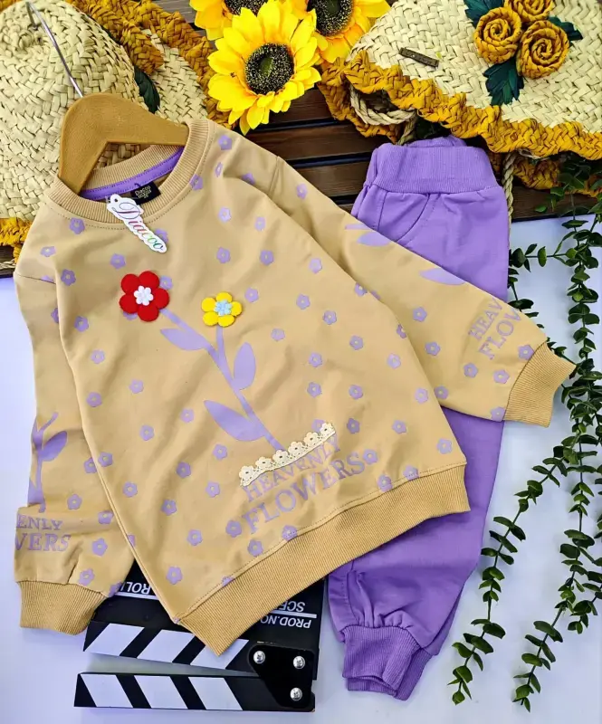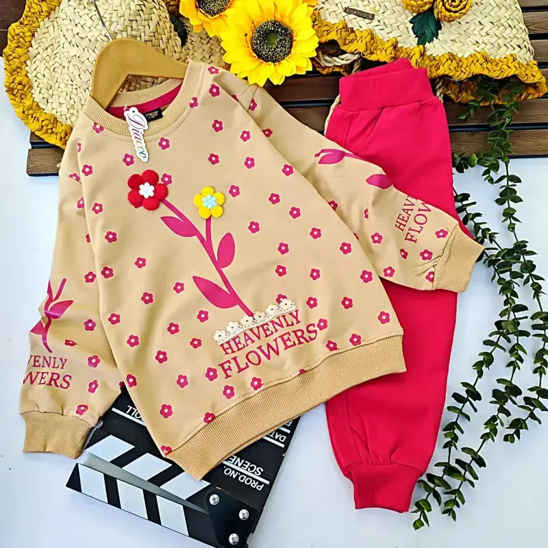 خرید عمده ست بلوز شلوار دخترانه طرح گلبرگ بهاری