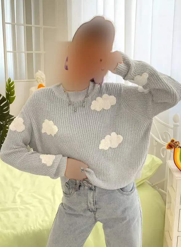 پلیور بافت زنانه طرح ابر - انتخابی شیک برای مغازهداران