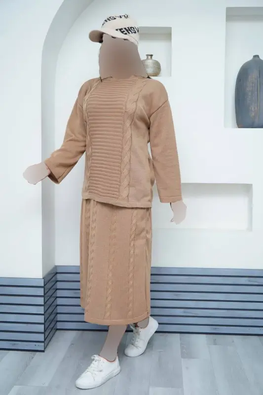 ست بافت کراپ دامن مارپیچ زنانه کد 602