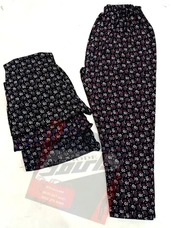 شلوار نخی راسته زنانه قواره بزرگ طرحدار فری سایز