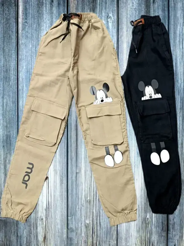شلوار کتان بنگال جیب پاکتی دخترانه طرح میکی موس