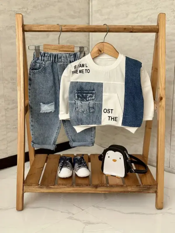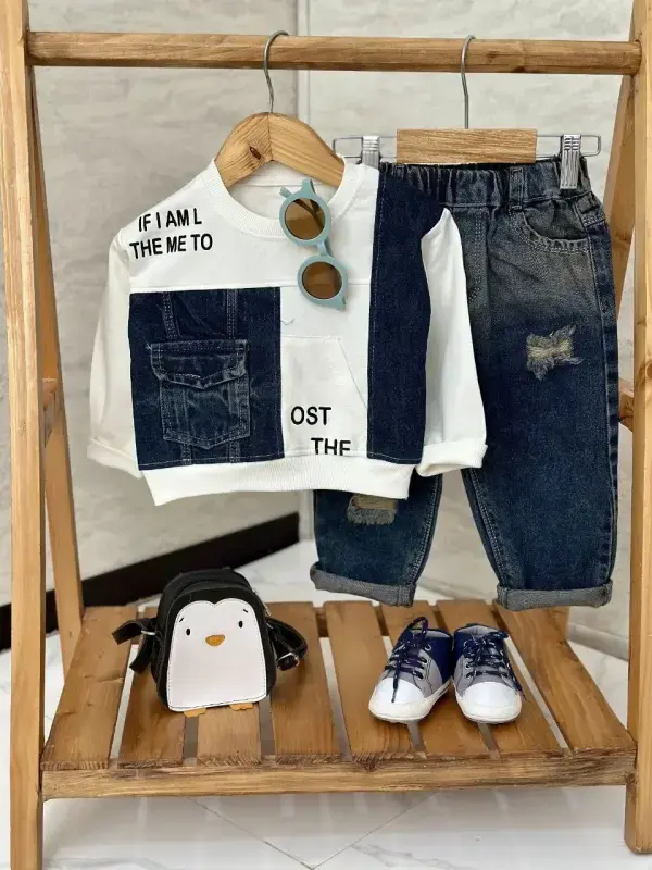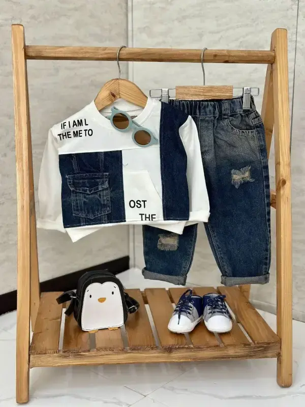 ست بلوز شلوار جین پسرانه طرح دار