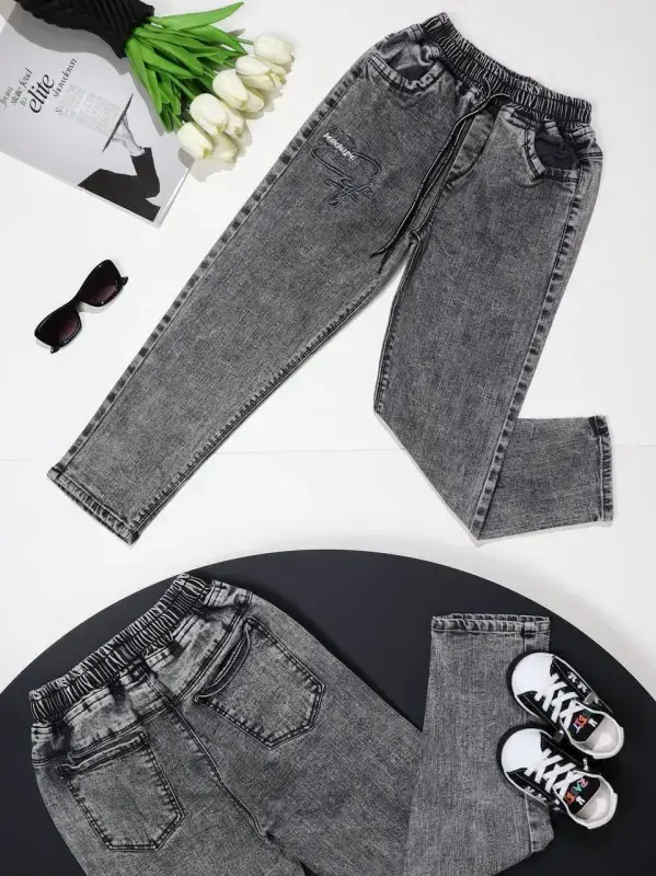 خرید عمده شلوار جین مام زغالی پسرانه با کیفیت عالی