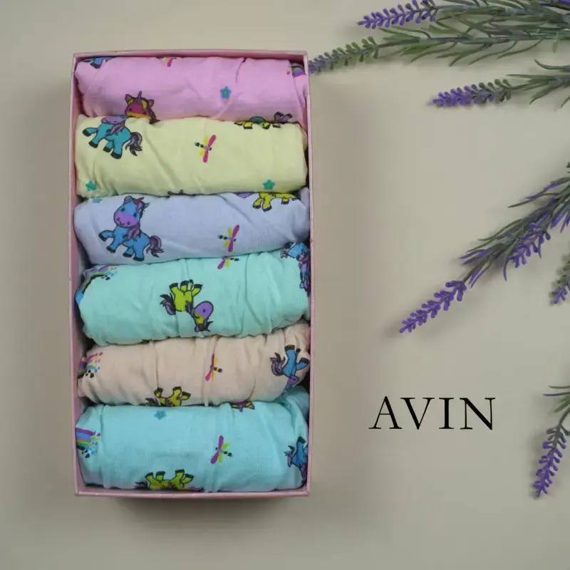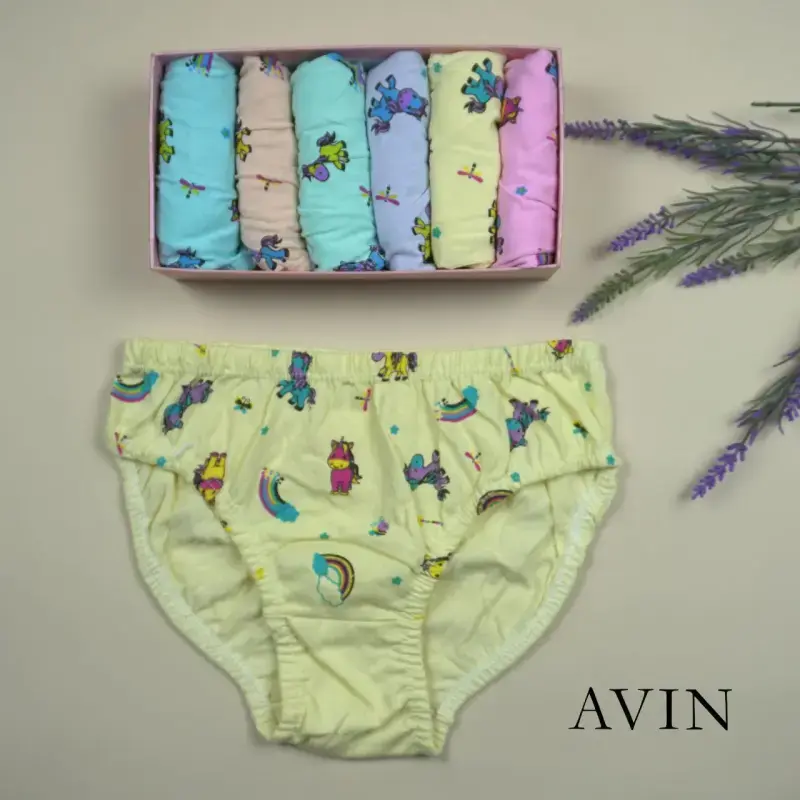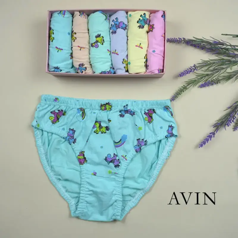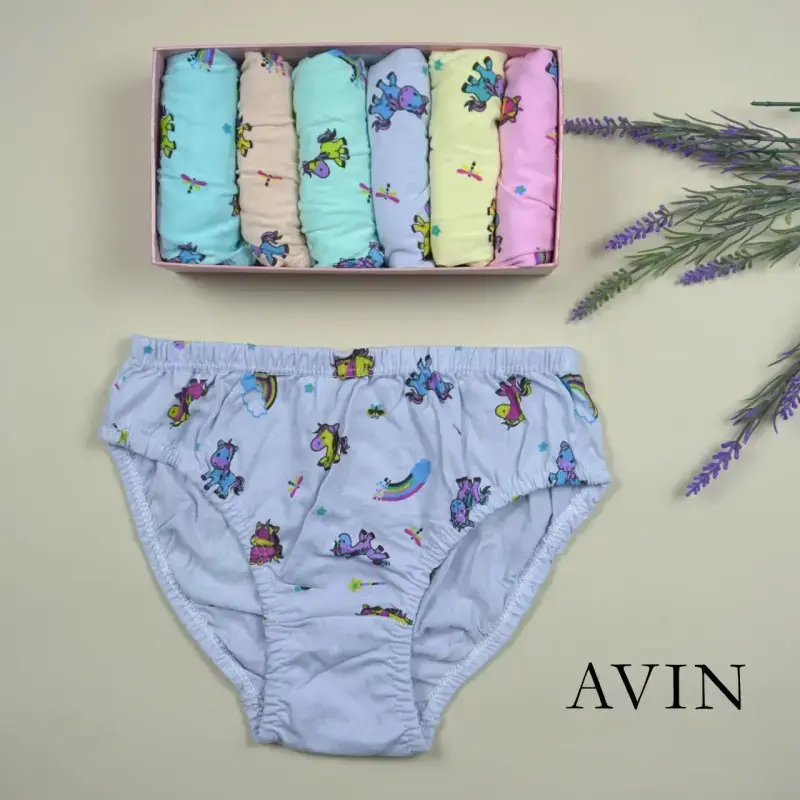 خرید عمده شورت لیفه ای بچه گانه نخی طرح یونیکورن بسته 12 عددی