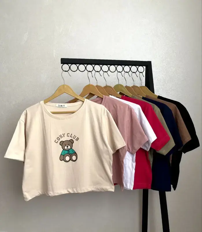 کراپ تدی دخترانه طرح COSY CLUB - مناسب خرید عمده پوشاک