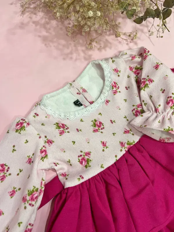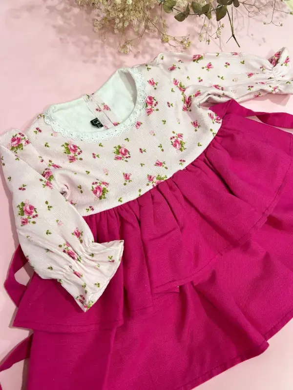 پیراهن دخترانه طرح گل صورتی سایز 30/35