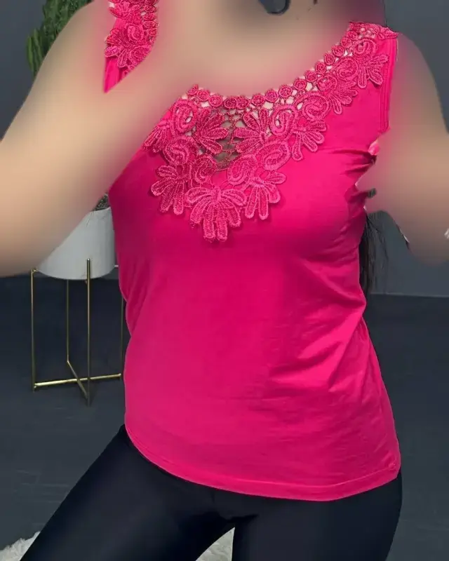 خرید عمده تاپ زنانه یقه گیپور ویسکوز فری سایز