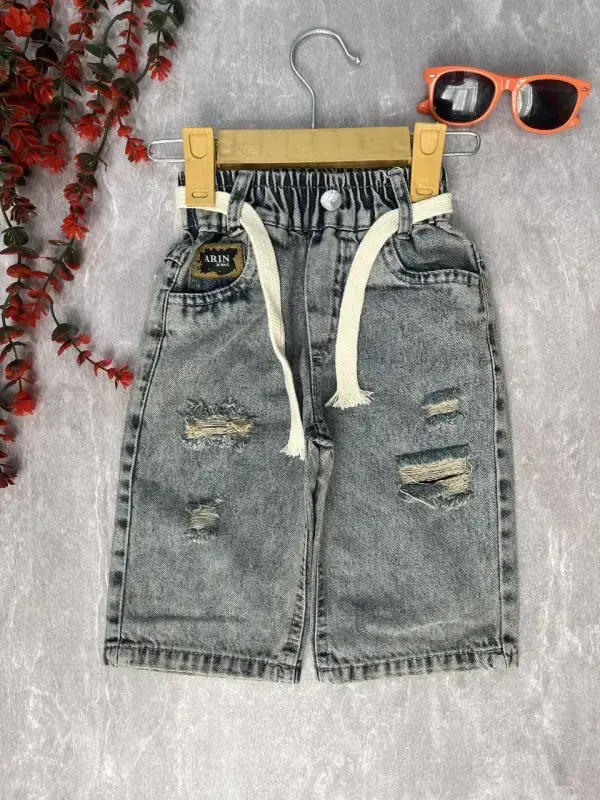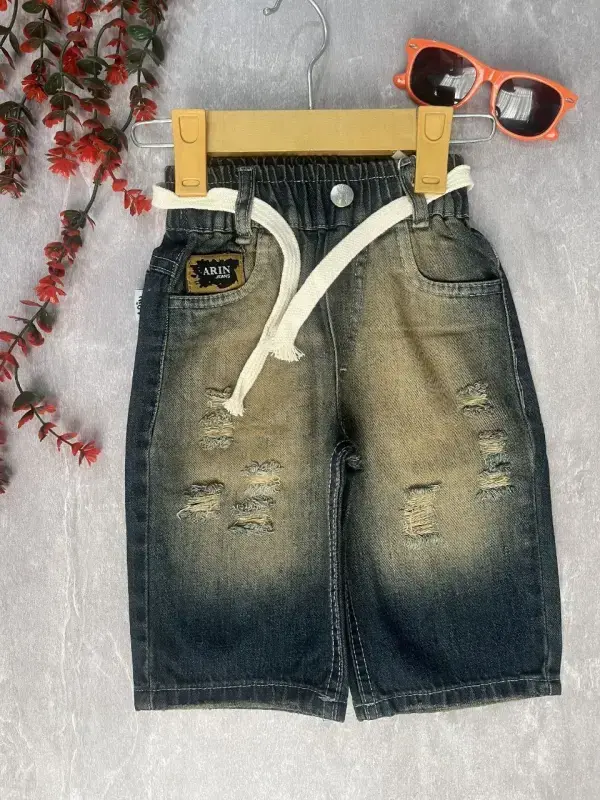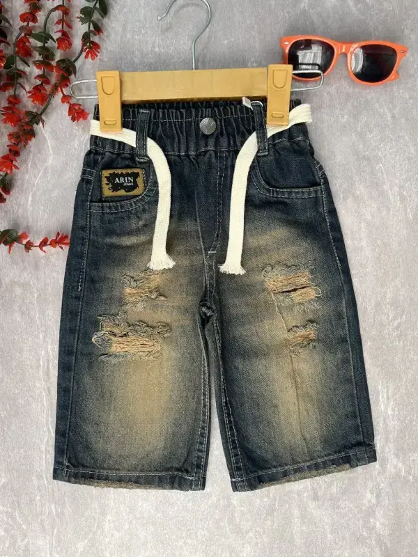 خرید عمده شلوارک لی پسرانه طرح زاپ دار کد 101
