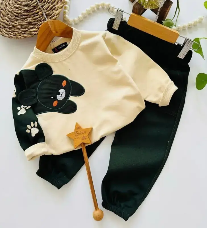 خرید عمده بلوز شلوار دورس طرح خرس و پنجه سگ بچگانه