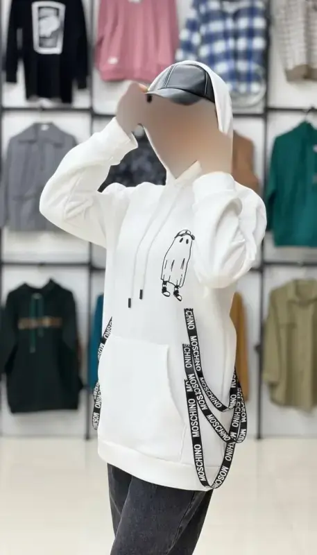 خرید عمده هودی لانگ لش طرح روح با چاپ پشت و رو و جنس دورس توخاری