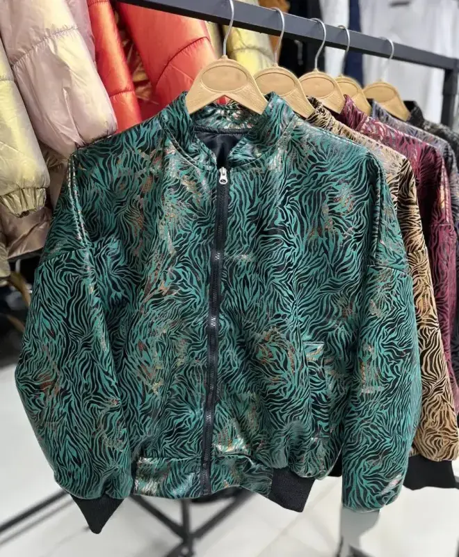 خرید عمده بمبـر چرم سوسماری زنانه طرح پلنگی