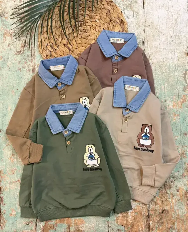 خرید عمده بلوز تک یقه دار پسرانه طرح خرس - بهترین کیفیت