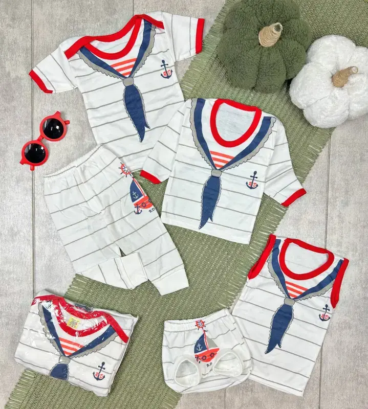 ارائه شده توسط پخش عمده پوشاک بچه گانه کوروش، این ست پنج تکه لباس نوزادی با طرح ملوان، انتخابی ایدهآل برای تکمیل کمد لباس نوزادان شماست. این محصول با دقت و ظرافت طراحی شده تا راحتی و زیبایی را برای دلبندتان به ارمغان آورد.