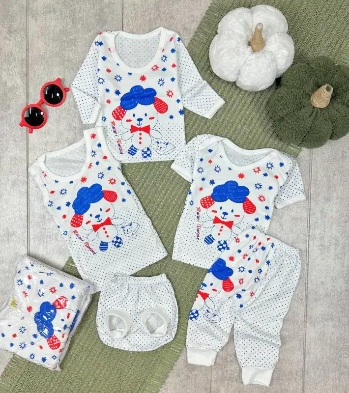 - نوع محصول: ست پنج تکه لباس نوزادی