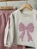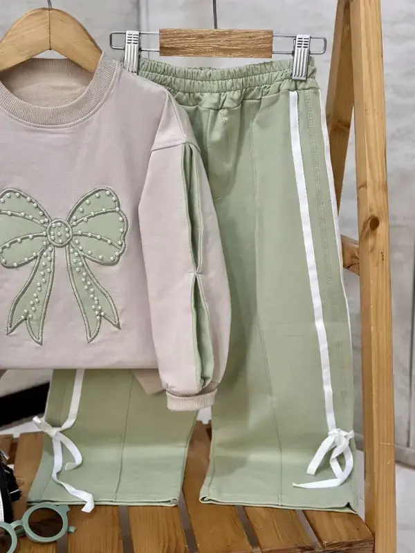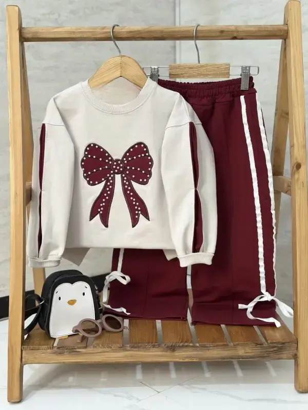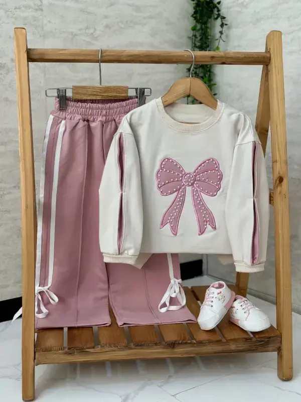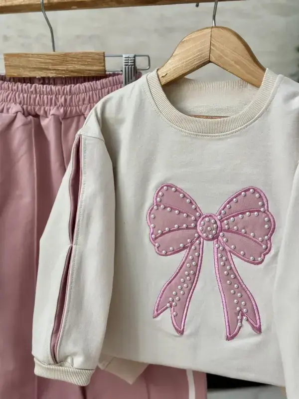 بلوز شلوار دخترانه طرح پاپیون مرواریدی کد f34