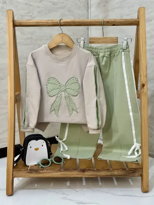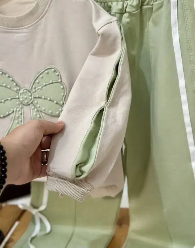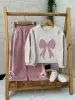 خرید عمده بلوز شلوار دخترانه طرح پاپیون مرواریدی کد f34