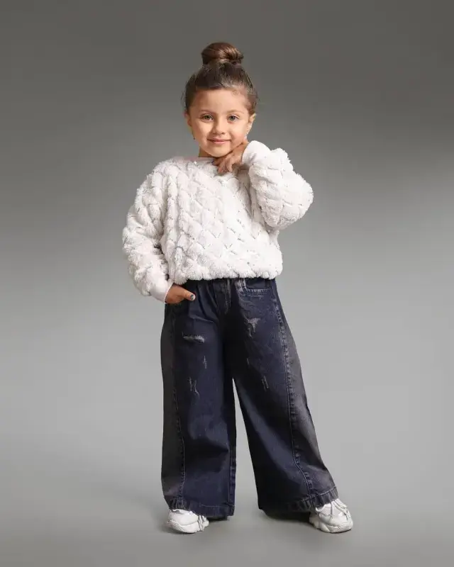 خرید عمده شلوار جین دخترانه شافل کد 107
