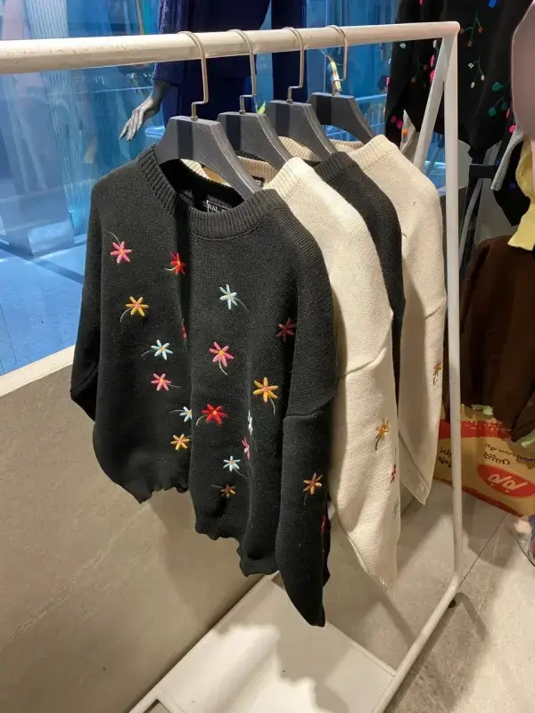 پلیور بافتنی زنانه طرح گل کد 4881: انتخابی ایدهآل برای خرید عمده پوشاک