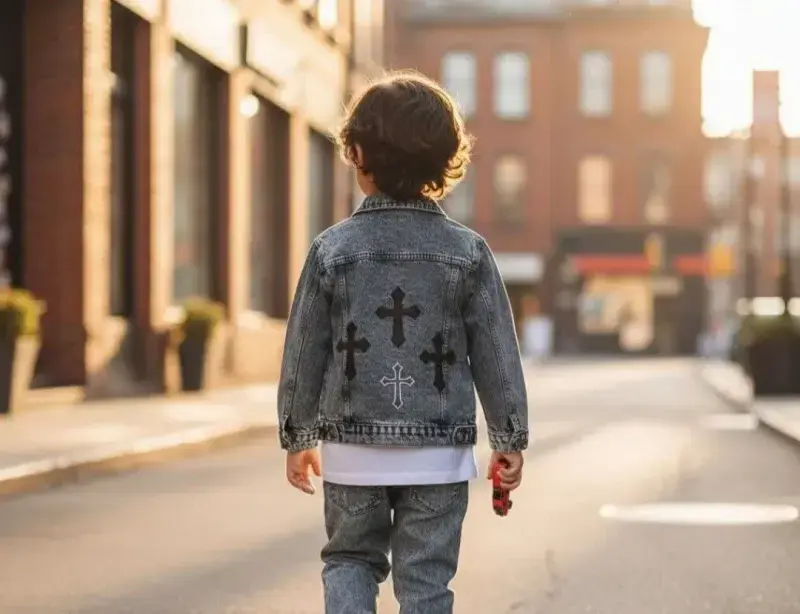 خرید عمده ست کت و شلوار لی اسپرت بچگانه طرح صلیب عیدانه