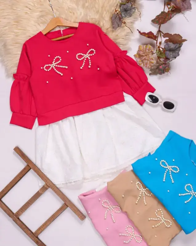 خرید عمده سارافون دخترانه طرح پاپیون مرواریدی