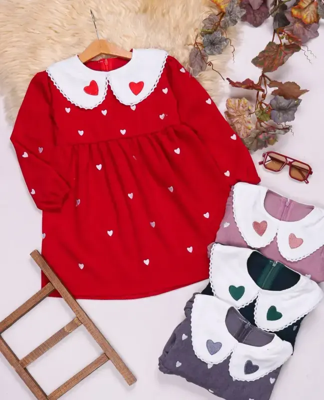 ارائه شده در 4 سایز کاربردی: 40، 45، 50 و 55، این سارافون مخمل دخترانه با طرح قلب، انتخابی ایدهآل برای تکمیل کلکسیون پوشاک شماست.