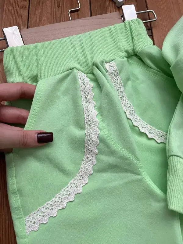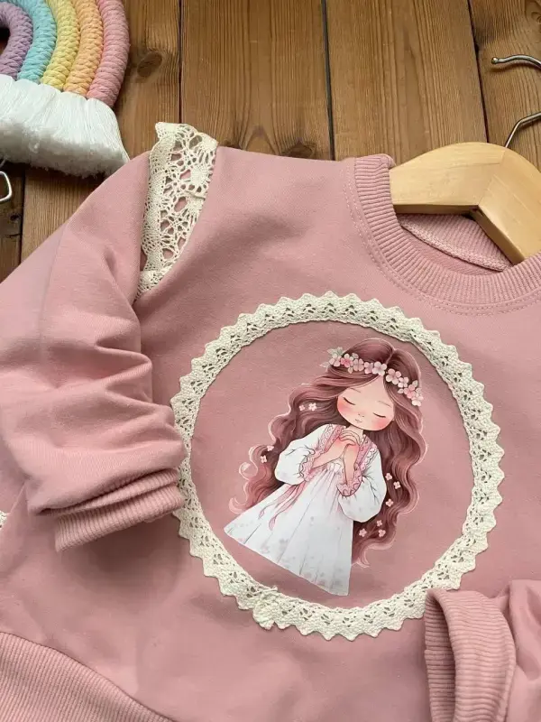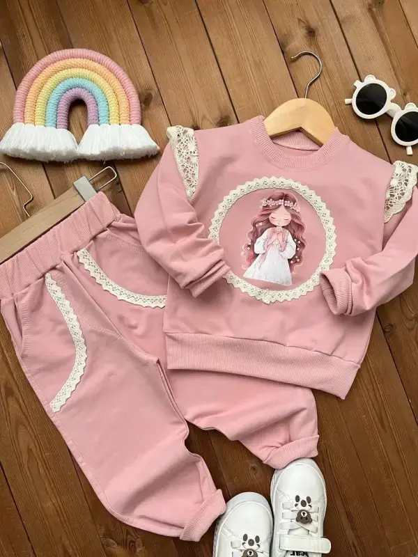 بلوز شلوار دخترانه طرح قاب دانتلی کد 8