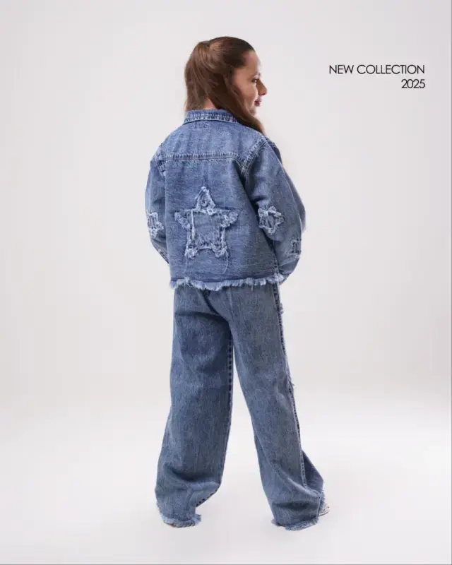 این ست سه تیکه شامل یک کت جین، یک شلوار جین کارگو و یک تی شرت پنبه کبریتی کش است که با طرح ستاره تیکه دوزی شده، جلوهای خاص و جذاب به استایل دخترانه میبخشد. این محصول مناسب برای خرید عمده پوشاک دخترانه و تکمیل کلکسیونهای عیدانه بوتیکها و آنلاینشاپها است.