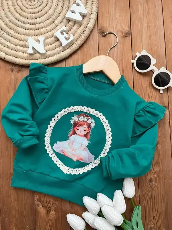 بلوز دخترانه طرح گل و فرشته آستین چیندار - کد 8