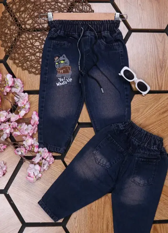 خرید عمده شلوار لی مام بچگانه طرح گربه