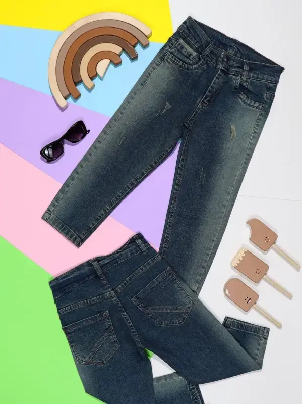 شلوار جین پسرانه کمردار راسته کثیف شور اسپرت
