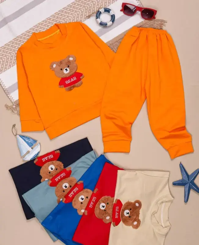 ارائه دهنده بلوز شلوار پسرانه طرح خرس با کیفیت بالا و قیمتی مناسب برای خرید عمده پوشاک. این محصول با طراحی جذاب و دلنشین، انتخابی ایدهآل برای تکمیل ویترین فروشگاه شما خواهد بود.