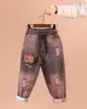 خرید عمده شلوار جین مام استایل بچگانه طرح دار با طرح سگ بامزه